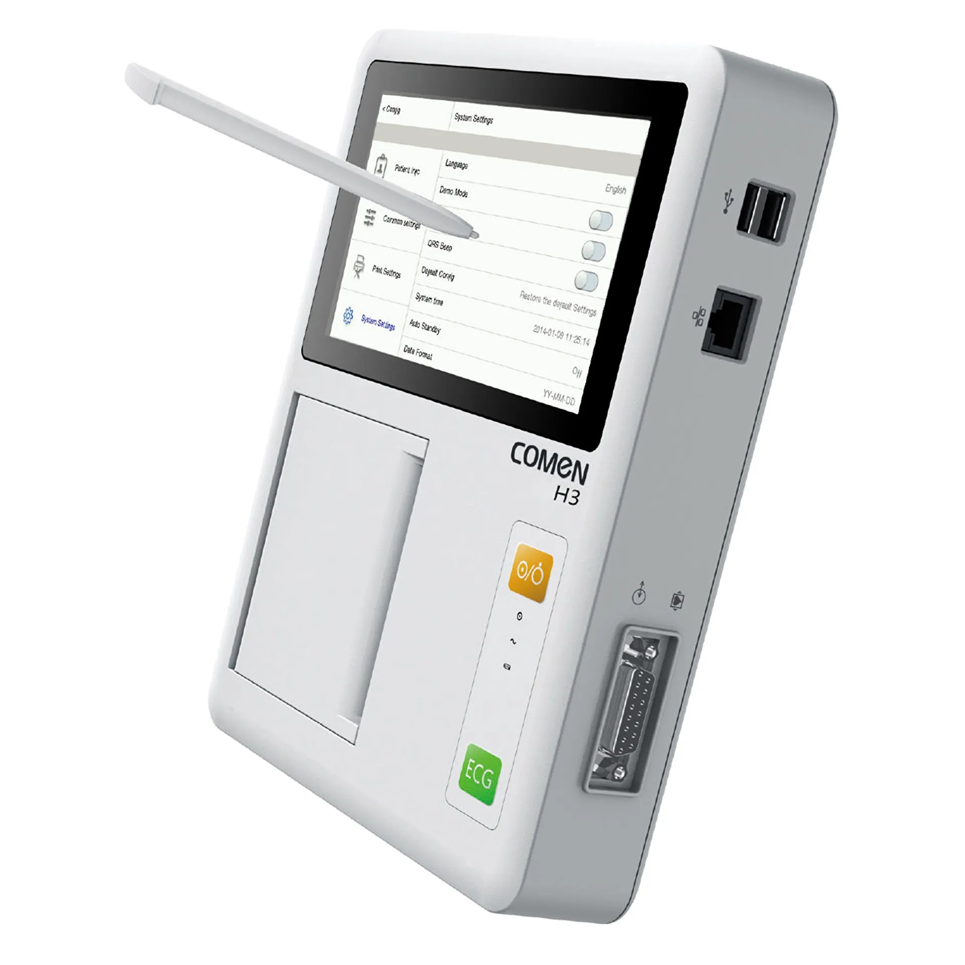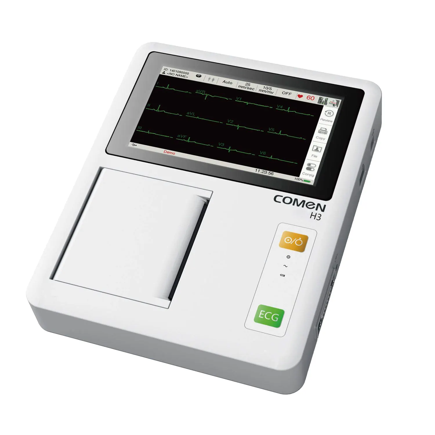 מכשיר אק״ג 3 ערוצים זה הוא מערכת ECG דיגיטלית וקומפקטית המצוידת במסך מגע LED מואר בגודל 6.2 אינץ'. המכשיר מאפשר צפייה סימולטנית בזמן אמת ב-12 ערוצי אק"ג, תיעוד מלא ורציף, והדפסה חלקה באמצעות מדפסת תרמית מובנית. הוא תומך בניהול מידע מתקדם ונועד לייעל את תהליך האבחון הקרדיולוגי במרפאות ובתי חולים.